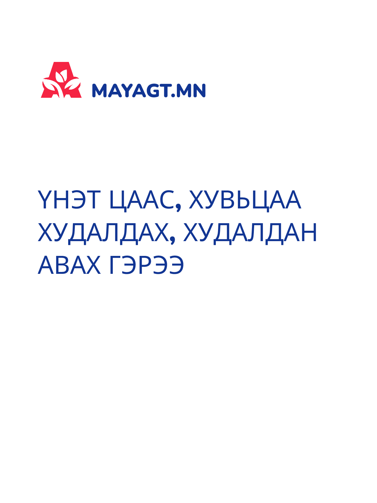 ҮНЭТ ЦААС, ХУВЬЦАА ХУДАЛДАХ, ХУДАЛДАН