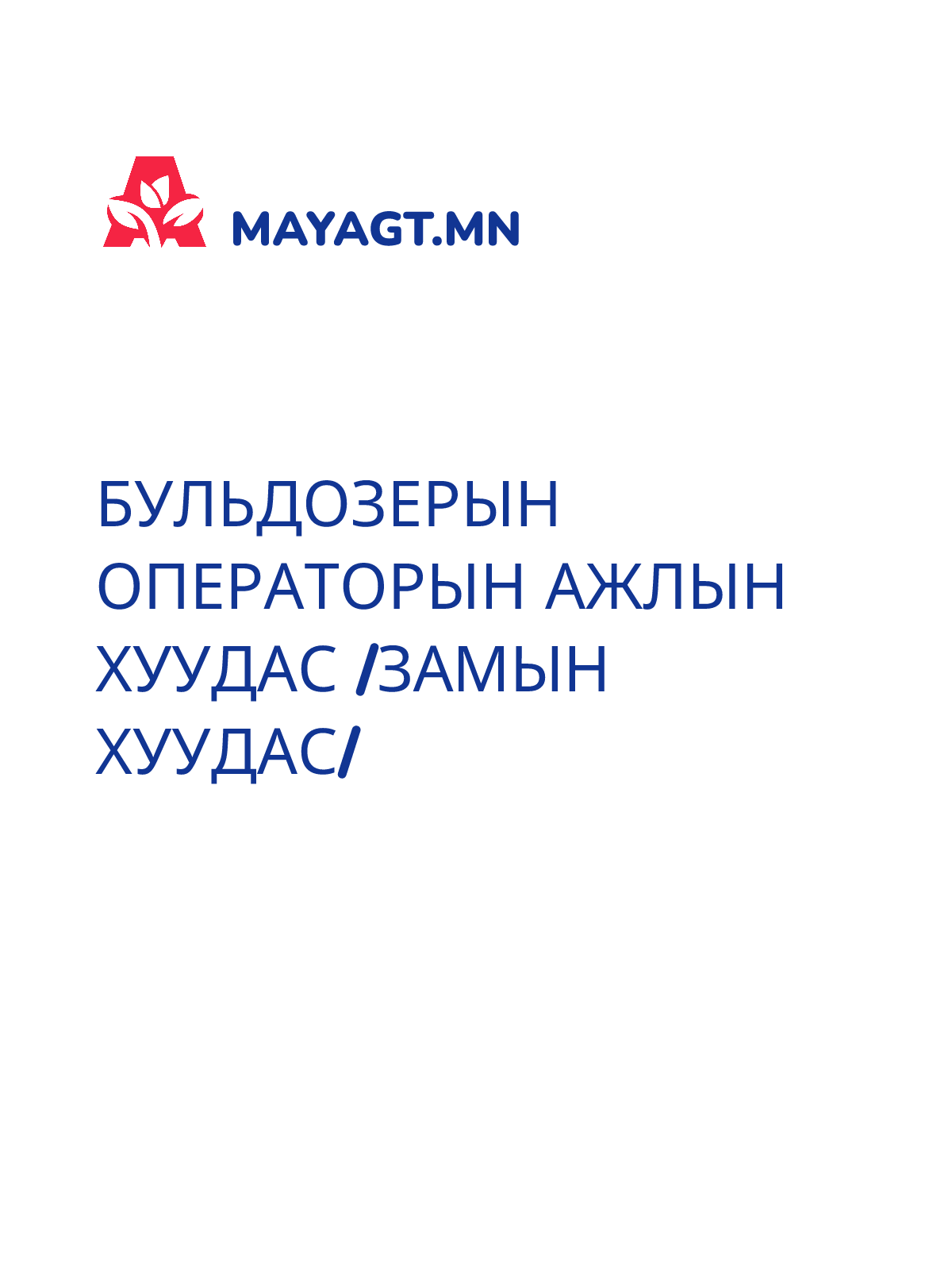 БУЛЬДОЗЕРЫН ОПЕРАТОРЫН АЖЛЫН ХУУДАС /ЗАМЫН ХУУДАС/