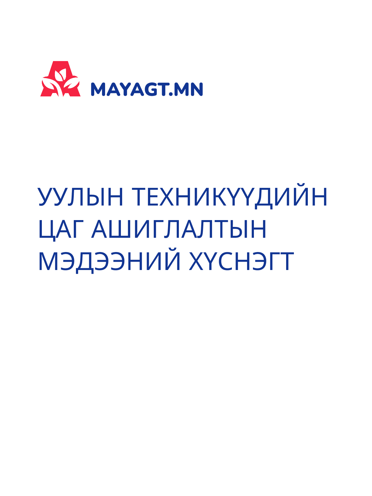 УУЛЫН ТЕХНИКҮҮДИЙН ЦАГ АШИГЛАЛТЫН МЭДЭЭНИЙ ХҮСНЭГТ