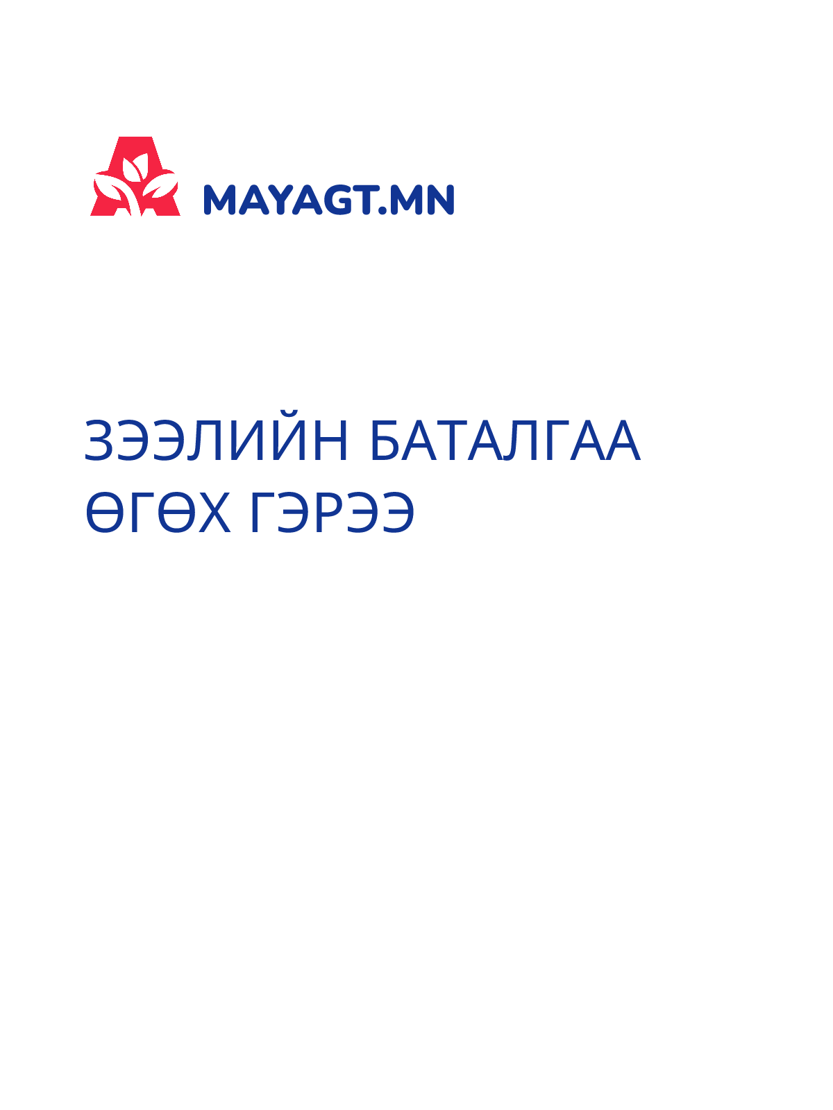 ЗЭЭЛИЙН БАТАЛГАА ӨГӨХ ГЭРЭЭ