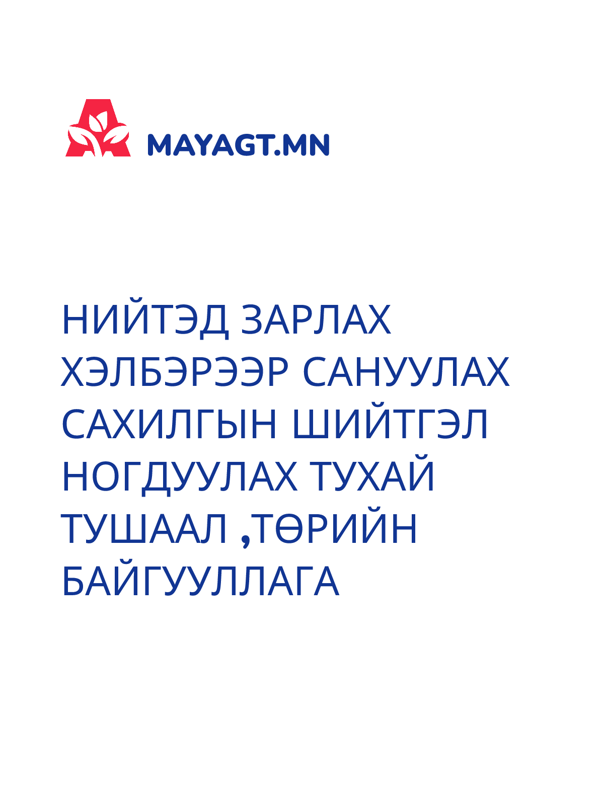 НИЙТЭД ЗАРЛАХ ХЭЛБЭРЭЭР САНУУЛАХ САХИЛГЫН ШИЙТГЭЛ НОГДУУЛАХ ТУХАЙ ТУШААЛ