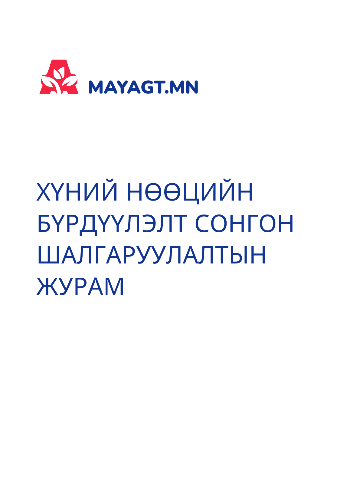 ХҮНИЙ НӨӨЦИЙН БҮРДҮҮЛЭЛТ СОНГОН ШАЛГАРУУЛАЛТЫН ЖУРАМ