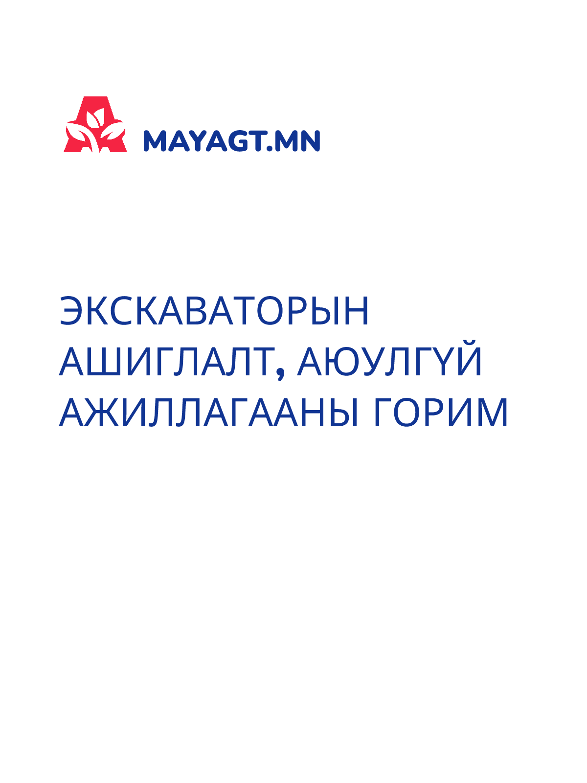ЭКСКАВАТОРЫН АШИГЛАЛТ, АЮУЛГҮЙ АЖИЛЛАГААНЫ ГОРИМ