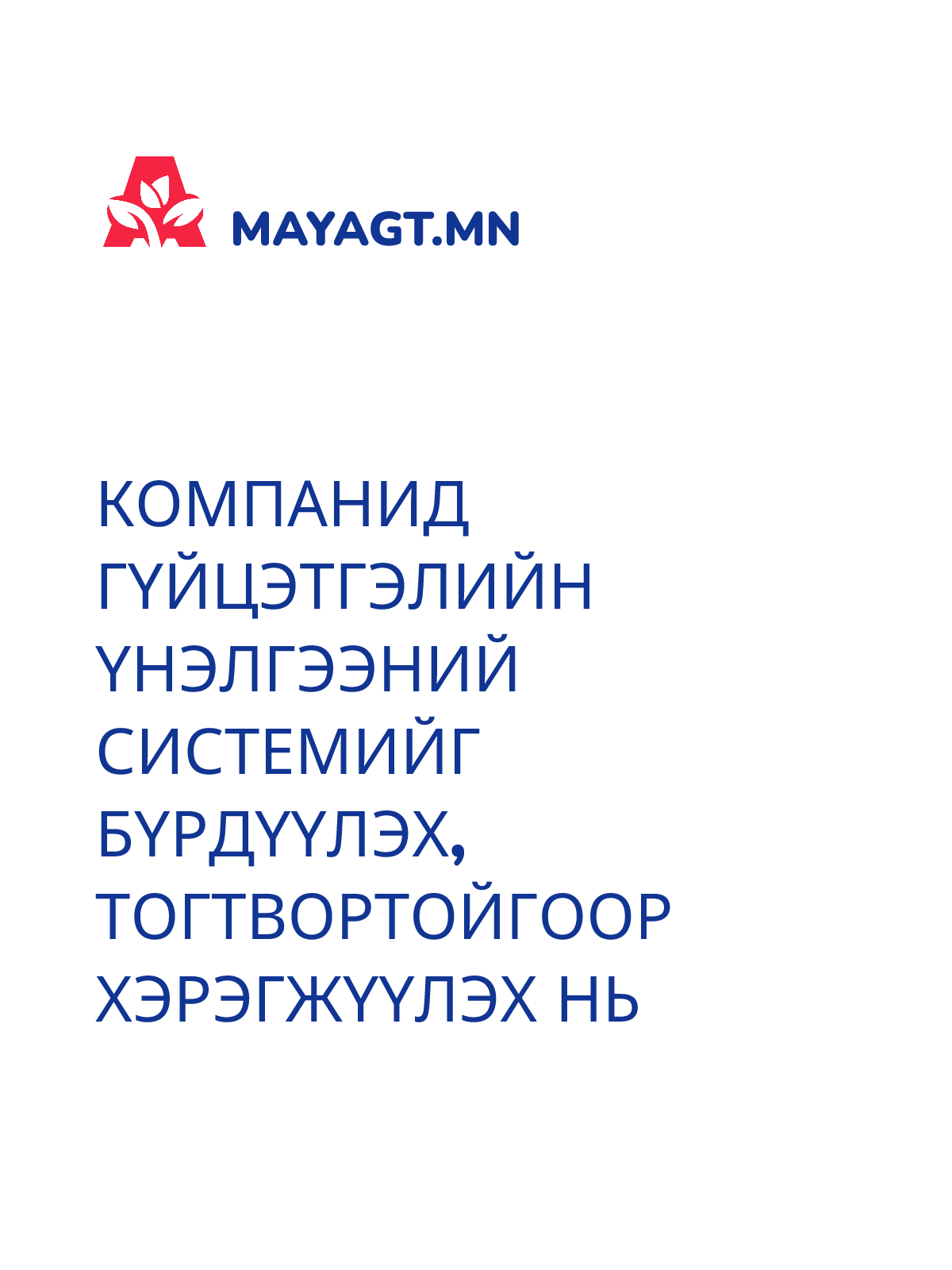 КОМПАНИД ГҮЙЦЭТГЭЛИЙН ҮНЭЛГЭЭНИЙ СИСТЕМИЙГ БҮРДҮҮЛЭХ, ТОГТВОРТОЙГООР ХЭРЭГЖҮҮЛЭХ НЬ
