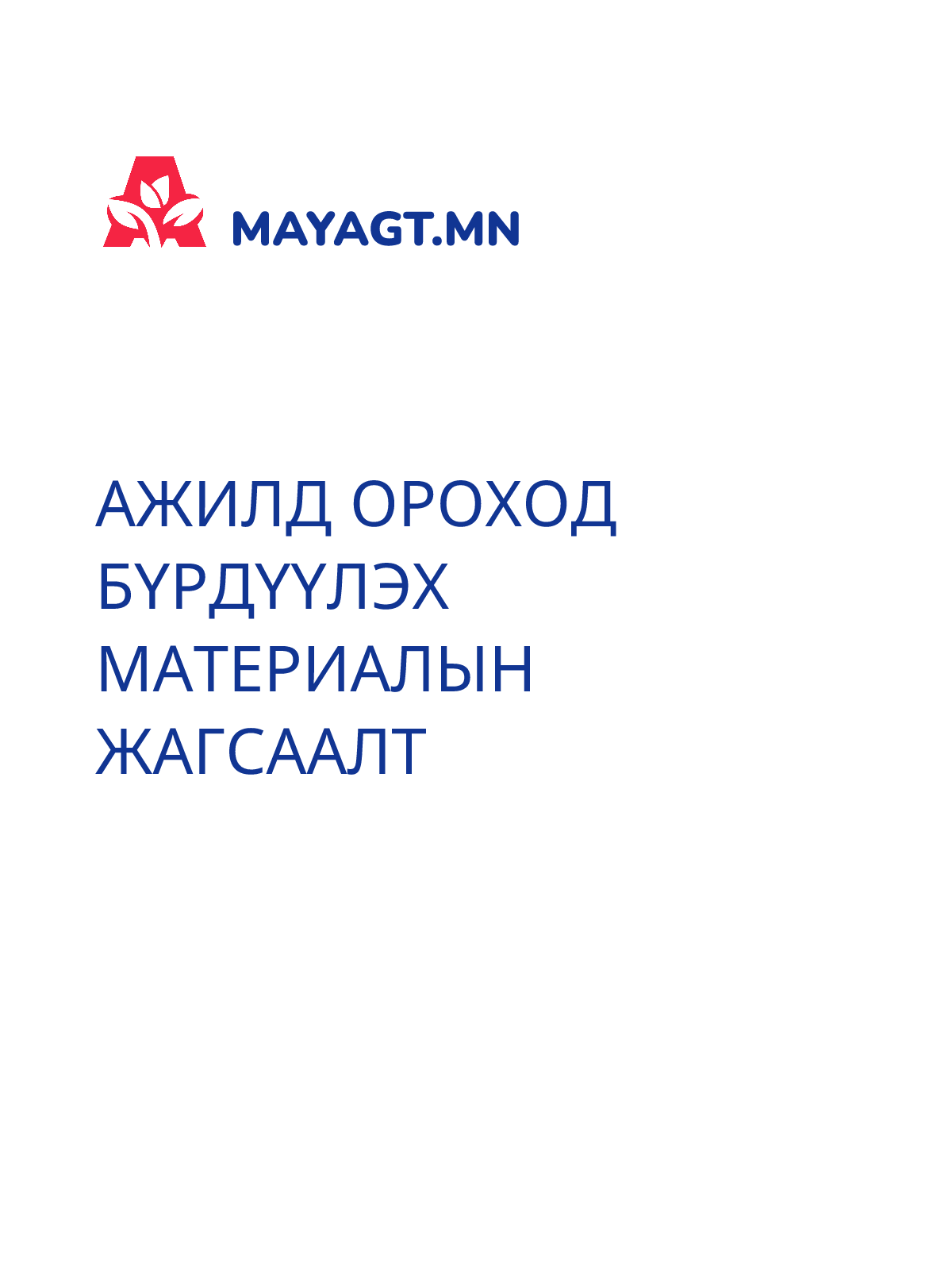 АЖИЛД ОРОХОД БҮРДҮҮЛЭХ МАТЕРИАЛЫН ЖАГСААЛТ