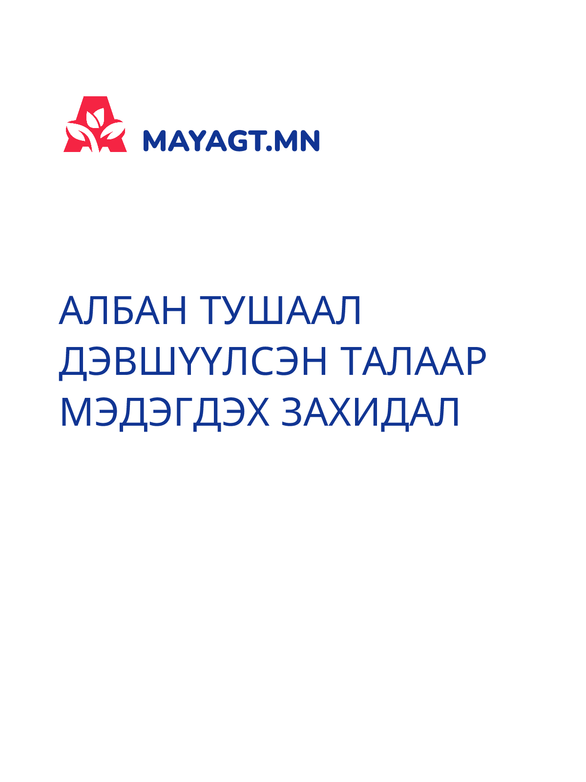 АЛБАН ТУШААЛ ДЭВШҮҮЛСЭН ТАЛААР МЭДЭГДЭХ ЗАХИДАЛ