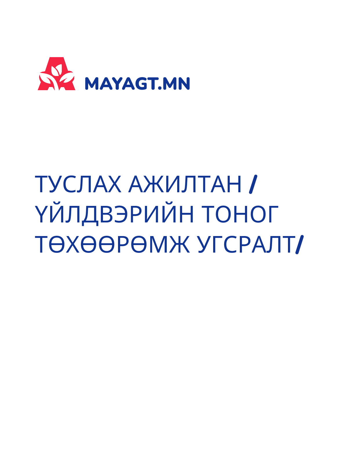 ТУСЛАХ АЖИЛТАН /ҮЙЛДВЭРИЙН ТОНОГ ТӨХӨӨРӨМЖ УГСРАЛТ/
