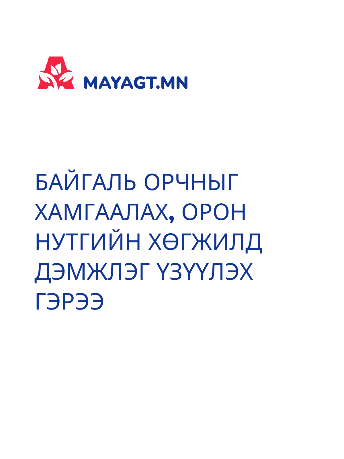 БАЙГАЛЬ ОРЧНЫГ ХАМГААЛАХ, ОРОН НУТГИЙН ХӨГЖИЛД ДЭМЖЛЭГ ҮЗҮҮЛЭХ ГЭРЭЭ