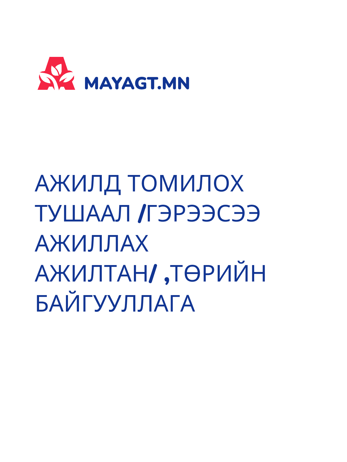 АЖИЛД ТОМИЛОХ ТУШААЛ /Гэрээсээ ажиллах ажилтан/ ,Төрийн байгууллага