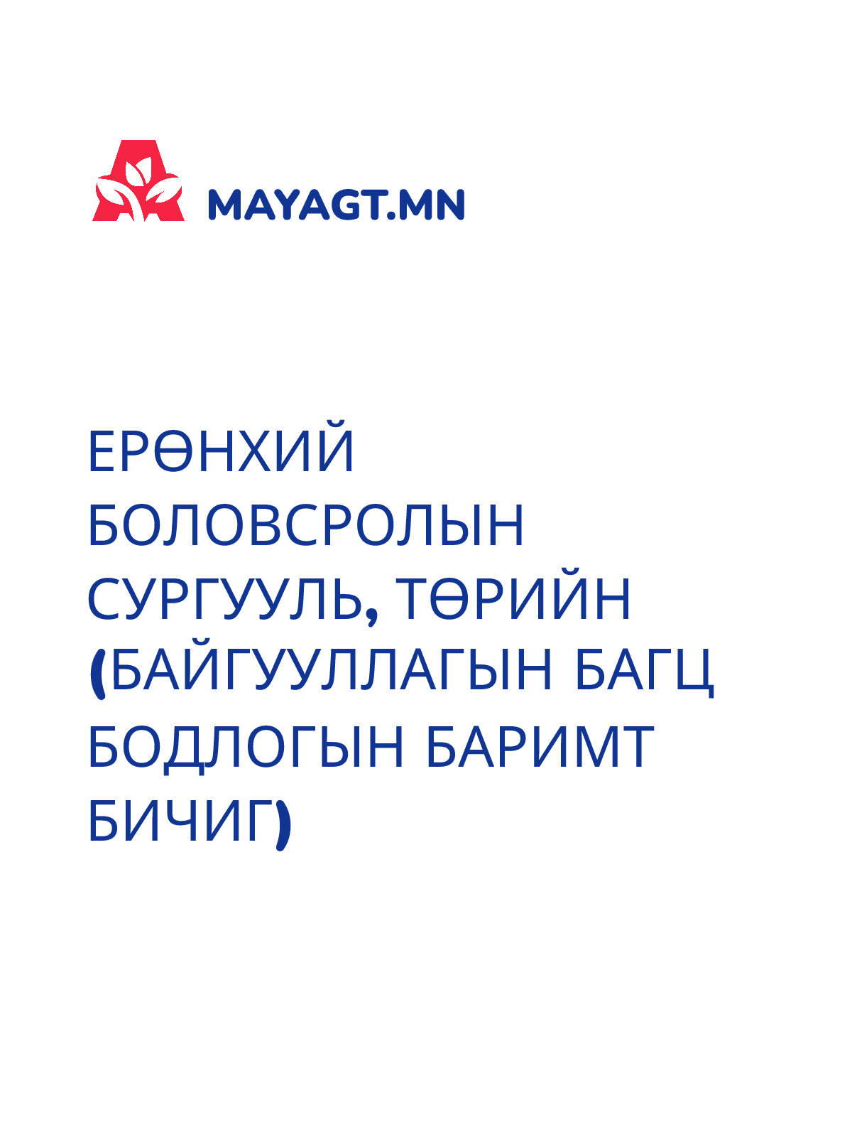 ЕРӨНХИЙ БОЛОВСРОЛЫН СУРГУУЛЬ, ТӨРИЙН (БАЙГУУЛЛАГЫН БАГЦ БОДЛОГЫН БАРИМТ БИЧИГ)