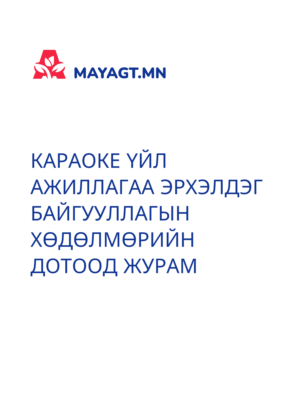 КАРАОКЕ ҮЙЛ АЖИЛЛАГАА ЭРХЭЛДЭГ БАЙГУУЛЛАГЫН ХӨДӨЛМӨРИЙН ДОТООД ЖУРАМ