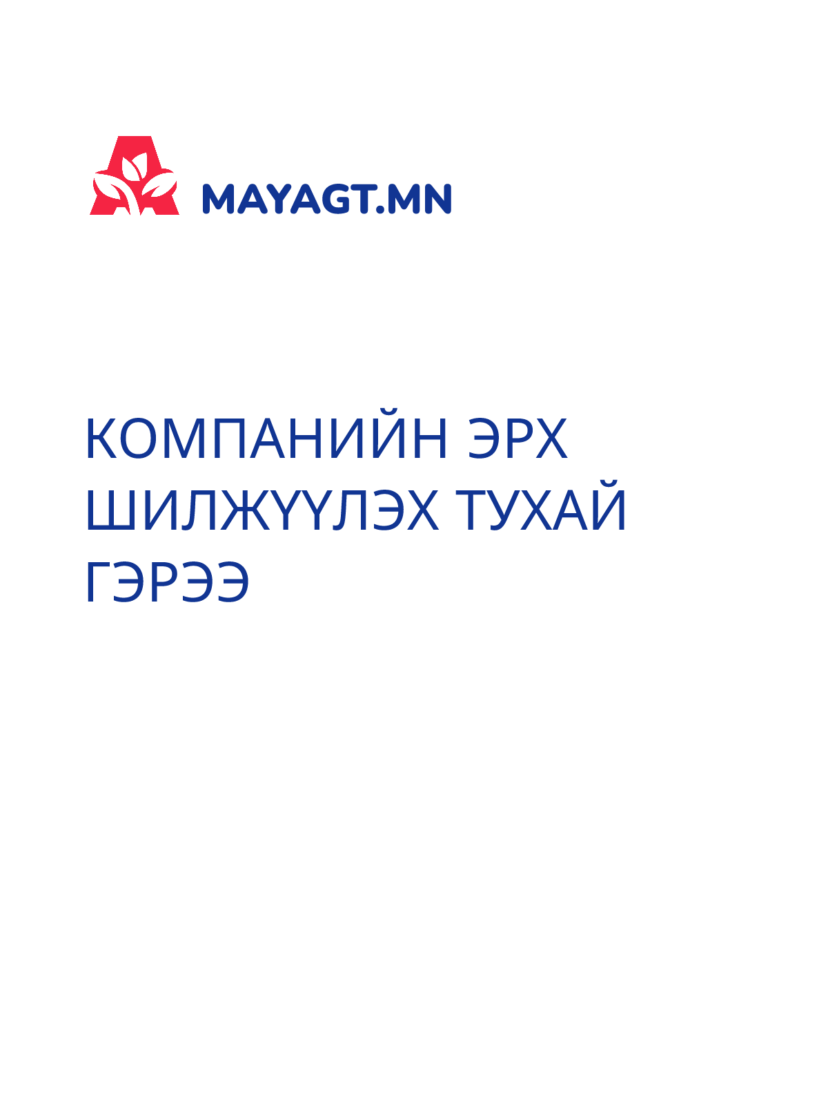 КОМПАНИЙН ЭРХ ШИЛЖҮҮЛЭХ ТУХАЙ ГЭРЭЭ