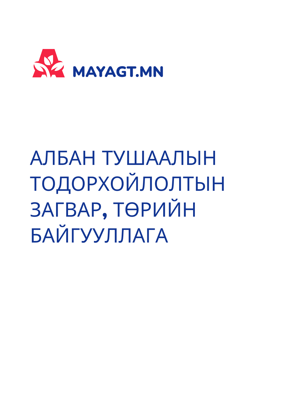 АЛБАН ТУШААЛЫН ТОДОРХОЙЛОЛТЫН ЗАГВАР, ТӨРИЙН БАЙГУУЛЛАГА