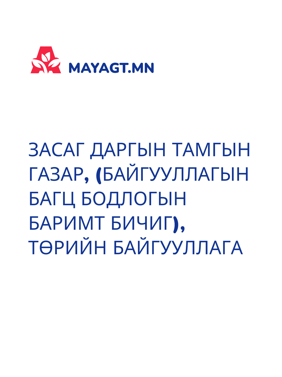 ЗАСАГ ДАРГЫН ТАМГЫН ГАЗАР, (БАЙГУУЛЛАГЫН БАГЦ БОДЛОГЫН БАРИМТ БИЧИГ), Төрийн байгууллага