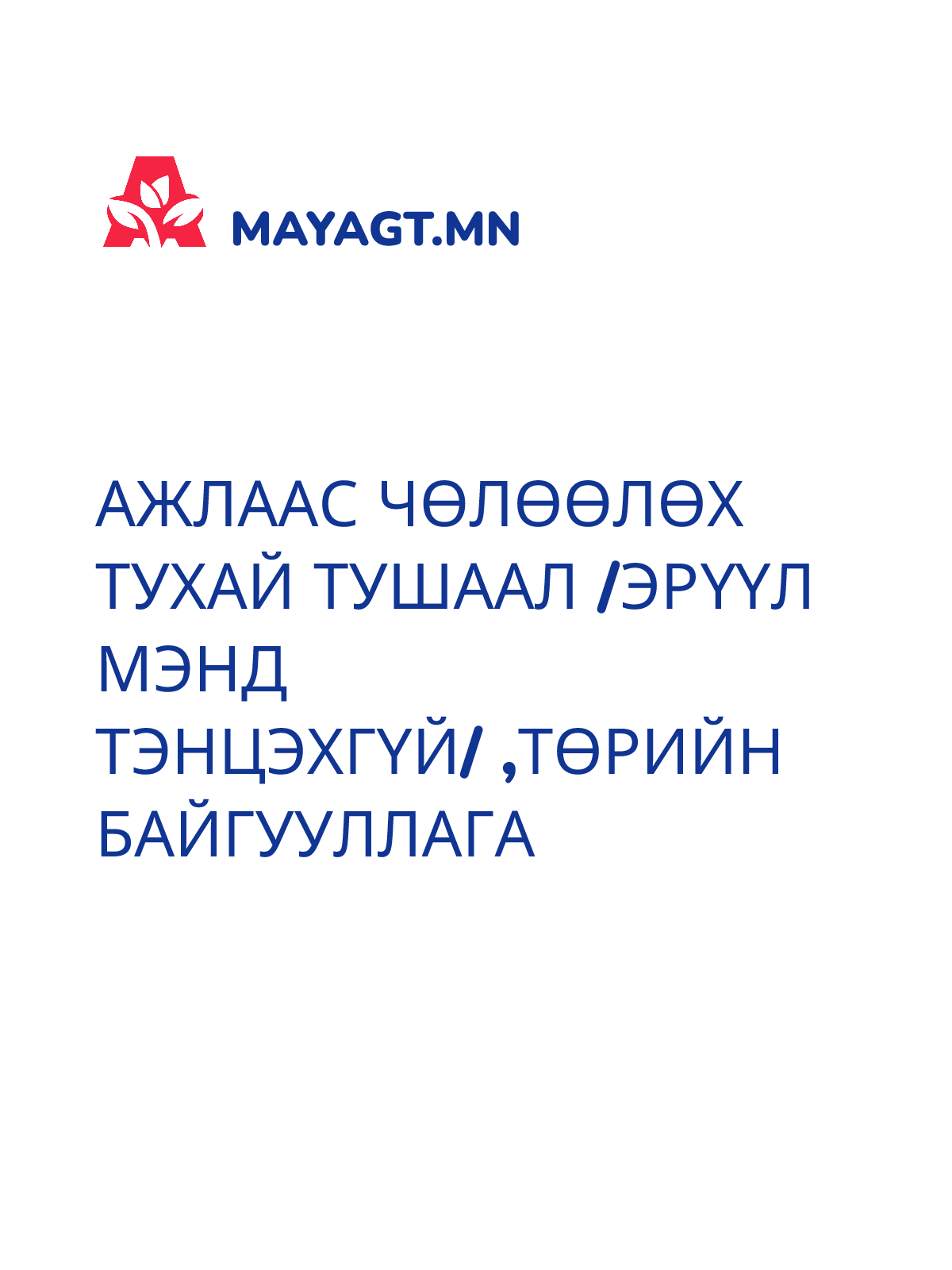 АЖЛААС ЧӨЛӨӨЛӨХ ТУХАЙ ТУШААЛ /Эрүүл мэнд тэнцэхгүй/ ,Төрийн байгууллага