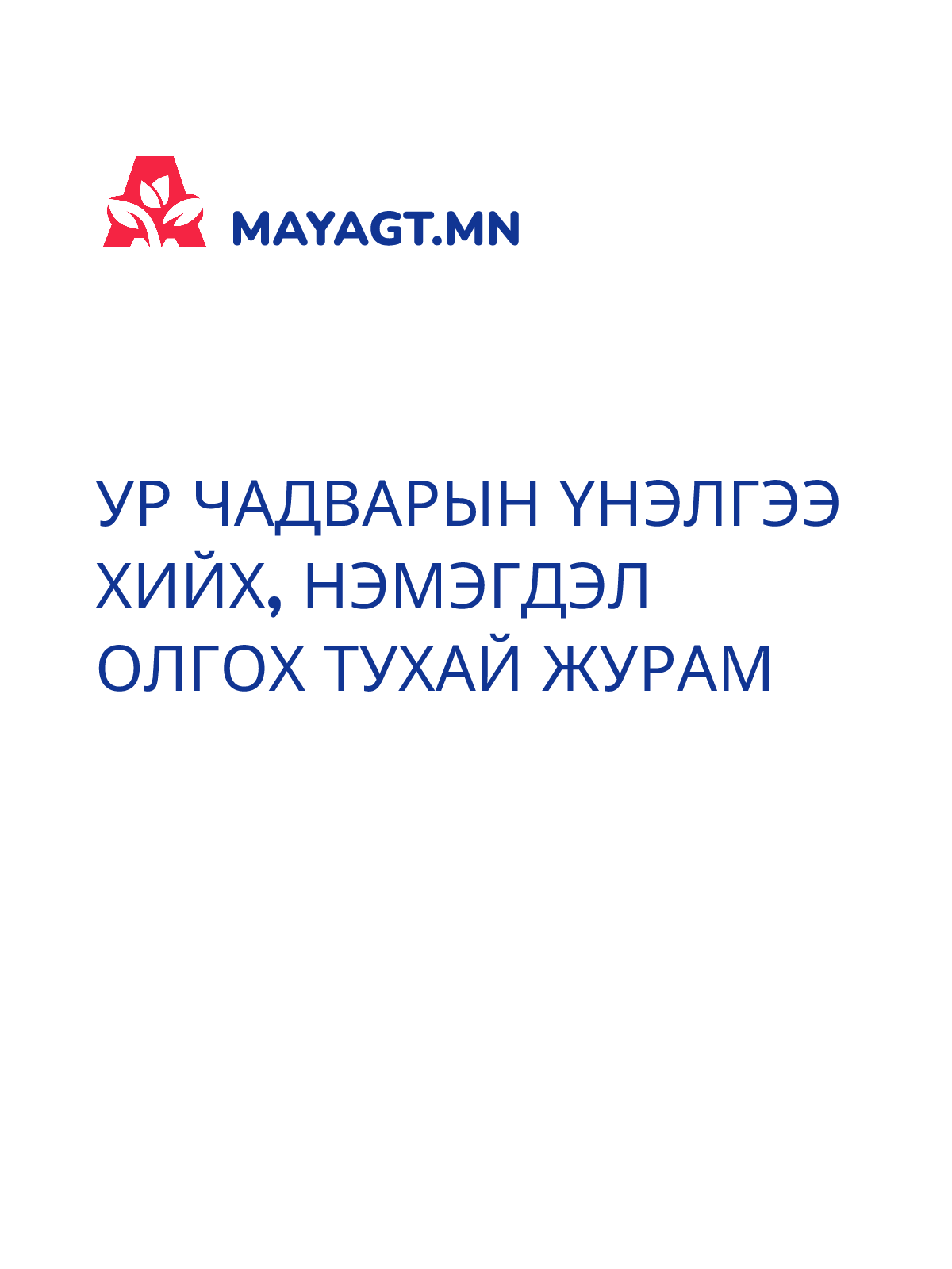 УР ЧАДВАРЫН ҮНЭЛГЭЭ ХИЙХ, НЭМЭГДЭЛ ОЛГОХ ТУХАЙ ЖУРАМ