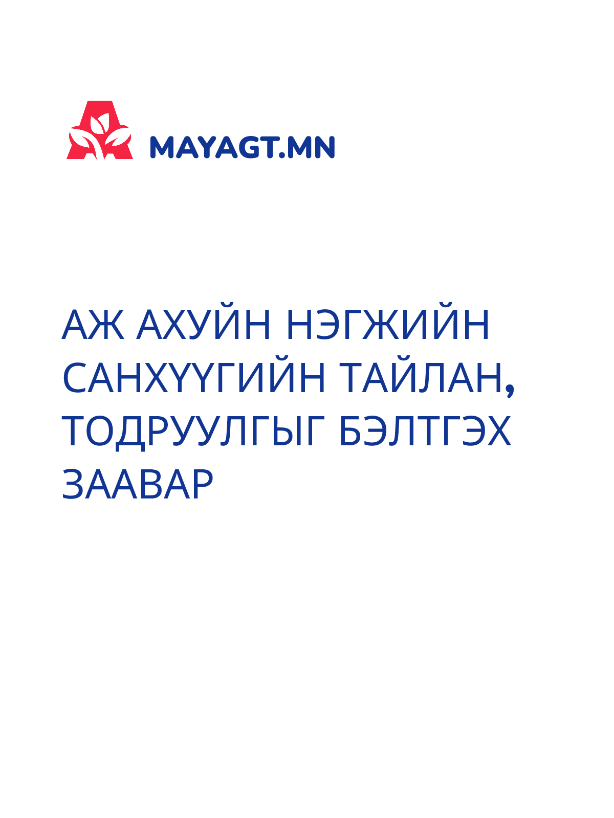 АЖ АХУЙН НЭГЖИЙН САНХҮҮГИЙН ТАЙЛАН, ТОДРУУЛГЫГ БЭЛТГЭХ ЗААВАР