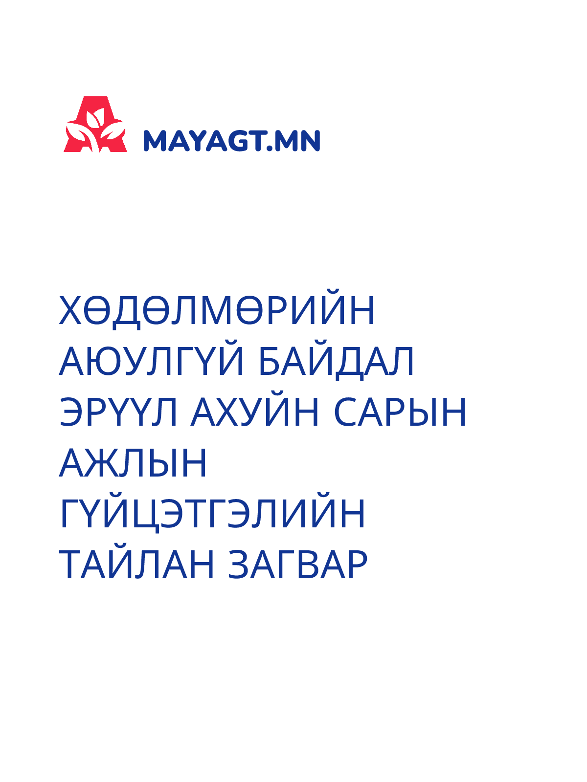 ХӨДӨЛМӨРИЙН АЮУЛГҮЙ БАЙДАЛ ЭРҮҮЛ АХУЙН САРЫН АЖЛЫН ГҮЙЦЭТГЭЛИЙН ТАЙЛАН ЗАГВАР