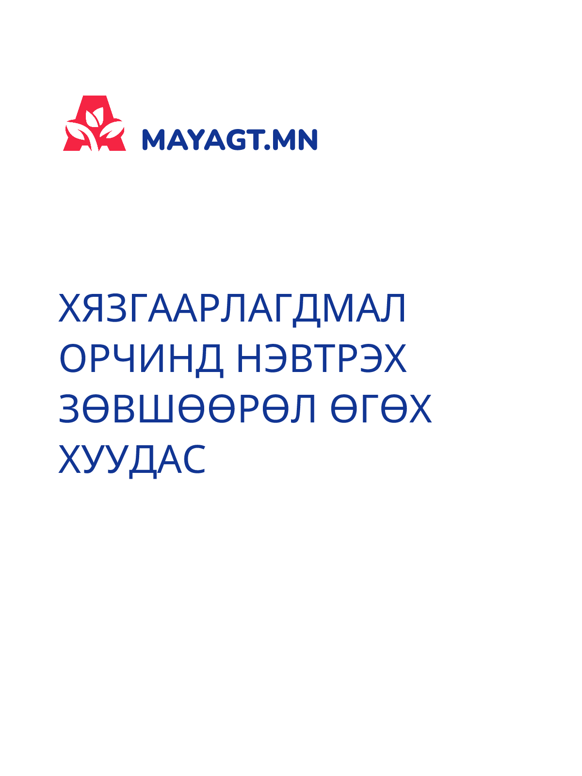 ХЯЗГААРЛАГДМАЛ ОРЧИНД НЭВТРЭХ ЗӨВШӨӨРӨЛ ӨГӨХ ХУУДАС