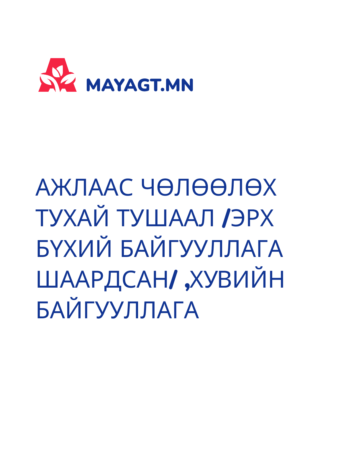 АЖЛААС ЧӨЛӨӨЛӨХ ТУХАЙ ТУШААЛ /Эрх бүхий байгууллага шаардсан/ ,Хувийн байгууллага
