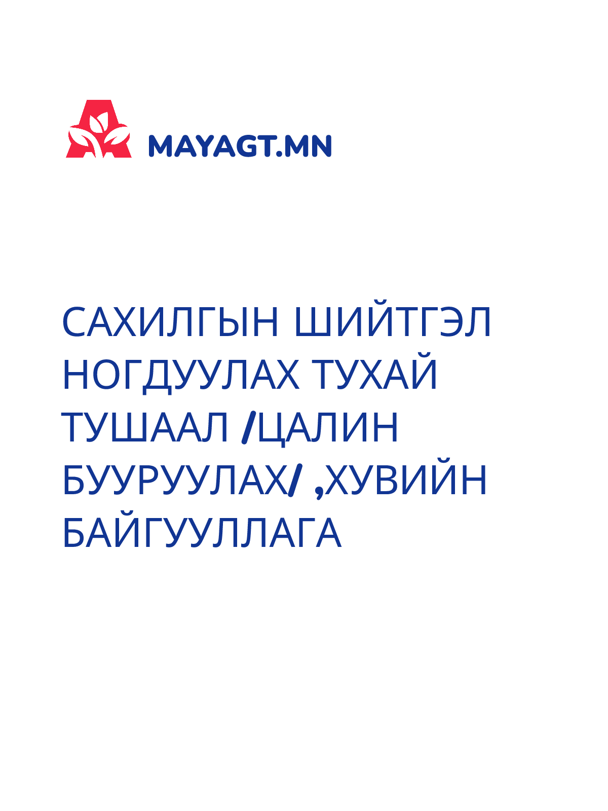 САХИЛГЫН ШИЙТГЭЛ НОГДУУЛАХ ТУХАЙ ТУШААЛ /ЦАЛИН БУУРУУЛАХ/ ,Хувийн байгууллага