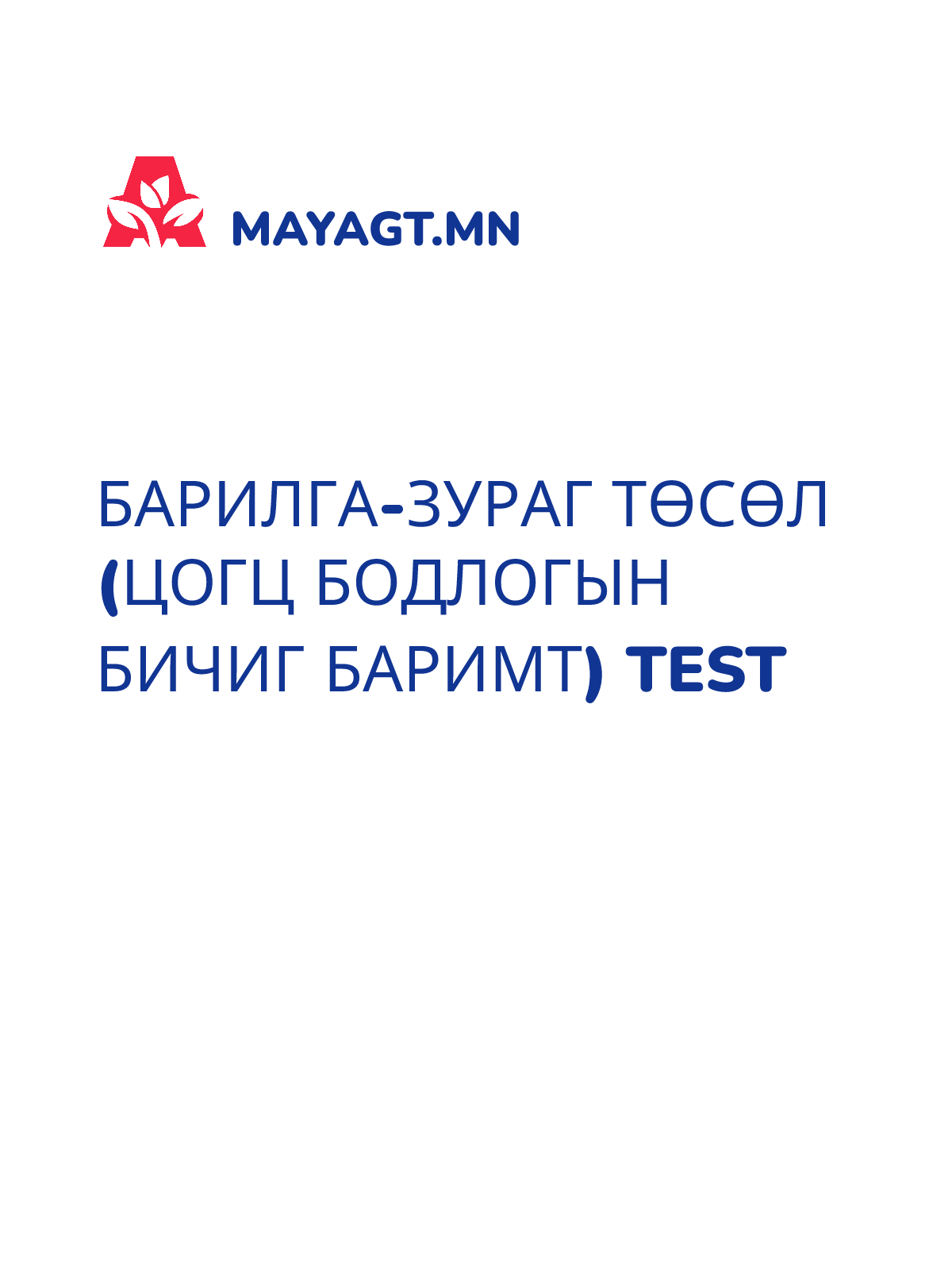 БАРИЛГА-ЗУРАГ ТӨСӨЛ (ЦОГЦ БОДЛОГЫН БИЧИГ БАРИМТ) test