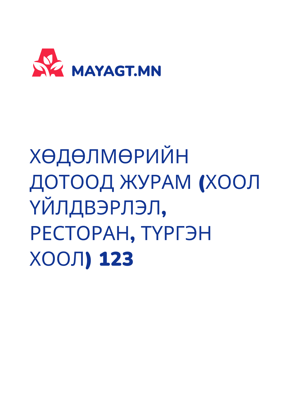 ХӨДӨЛМӨРИЙН ДОТООД ЖУРАМ (ХООЛ ҮЙЛДВЭРЛЭЛ, РЕСТОРАН, ТҮРГЭН ХООЛ) 123