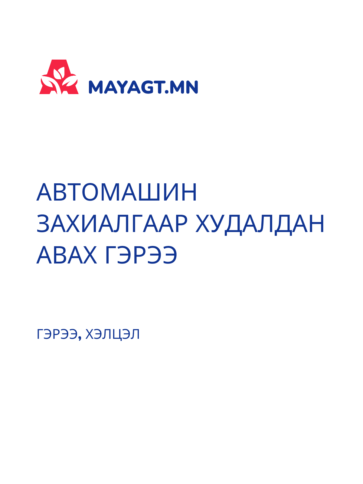 АВТОМАШИН ЗАХИАЛГААР ХУДАЛДАН АВАХ ГЭРЭЭ