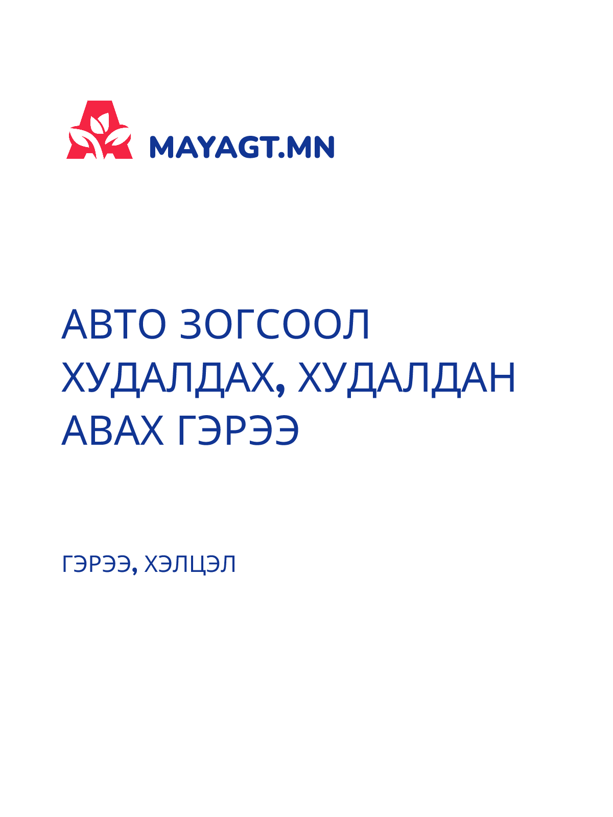 АВТОМАШИН ТҮРЭЭСЛЭХ ГЭРЭЭ