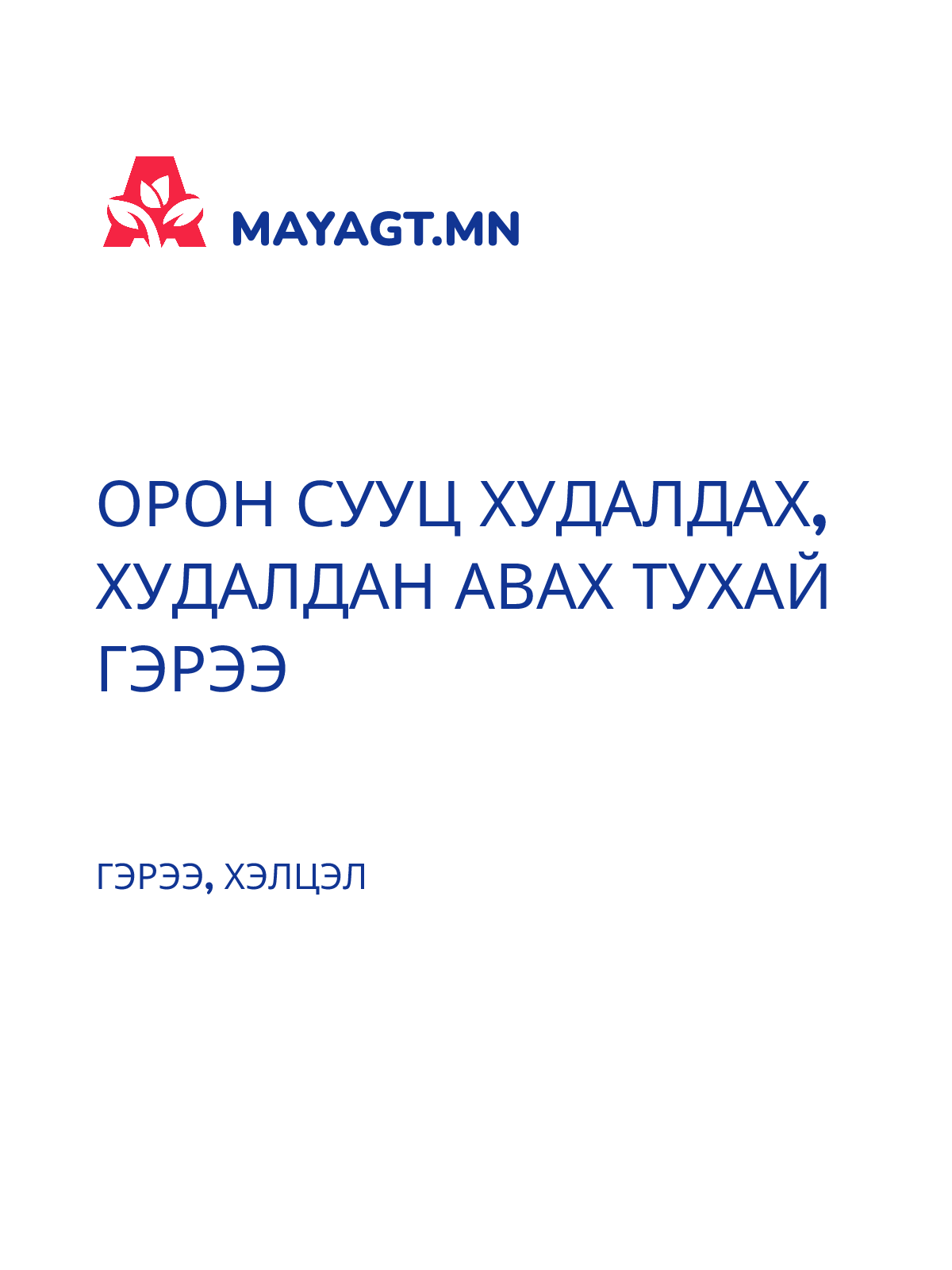 ОРОН СУУЦ ХУДАЛДАХ, ХУДАЛДАН АВАХ ТУХАЙ ГЭРЭЭ
