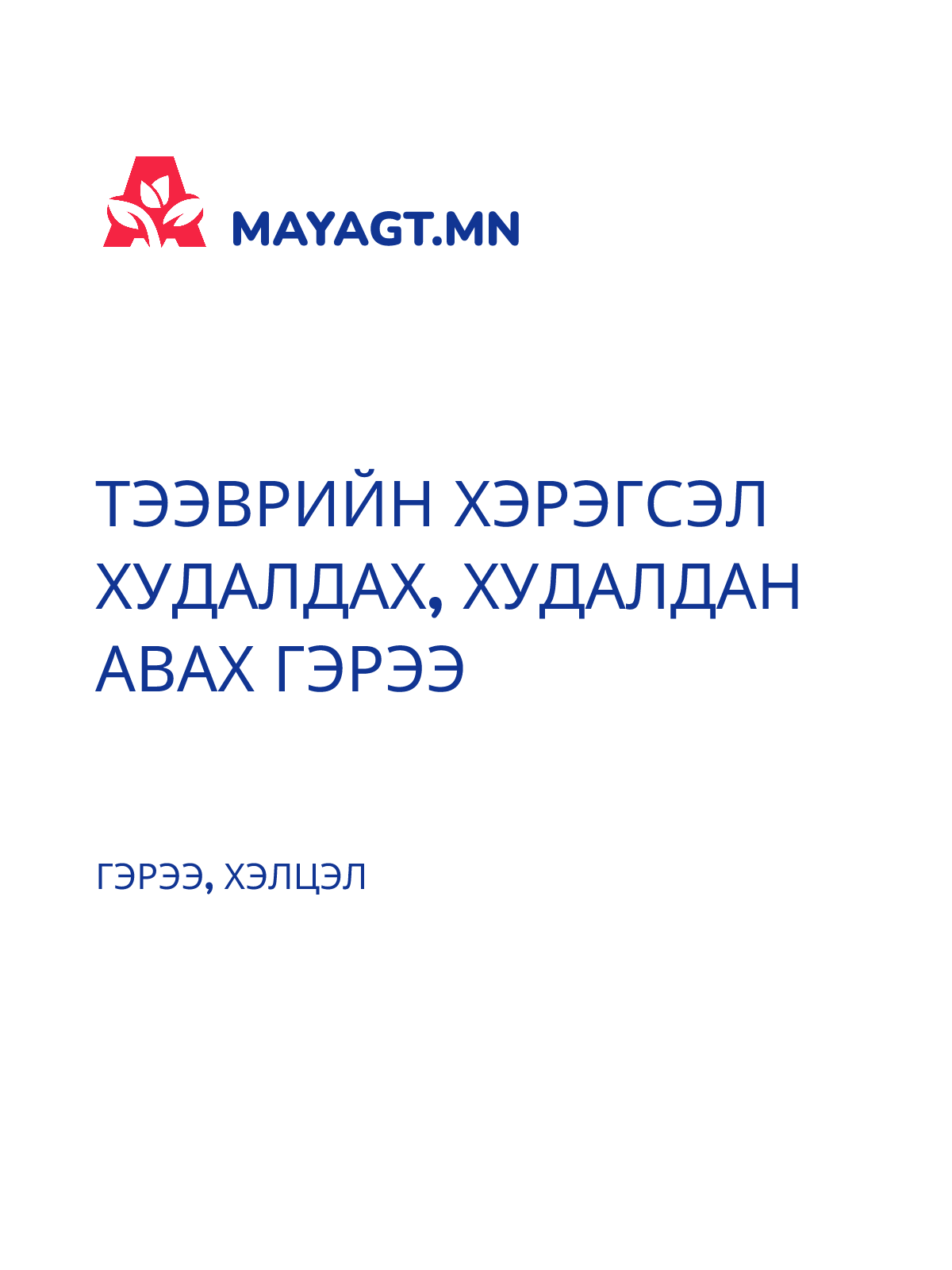 ХУДАЛДАХ, ХУДАЛДАН АВАХ ГЭРЭЭ