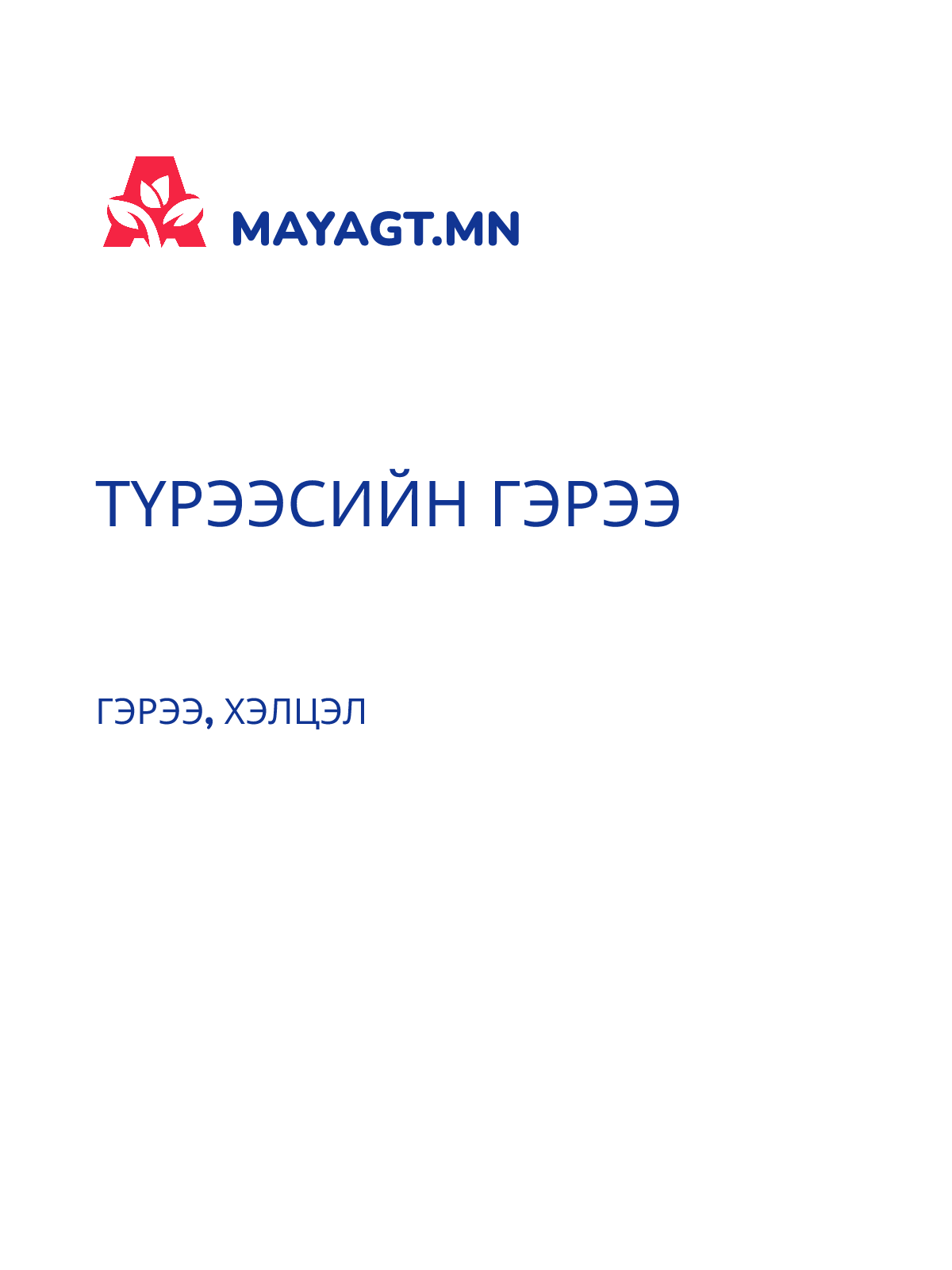 ГЭРЭЭ, ХЭЛЦЭЛ