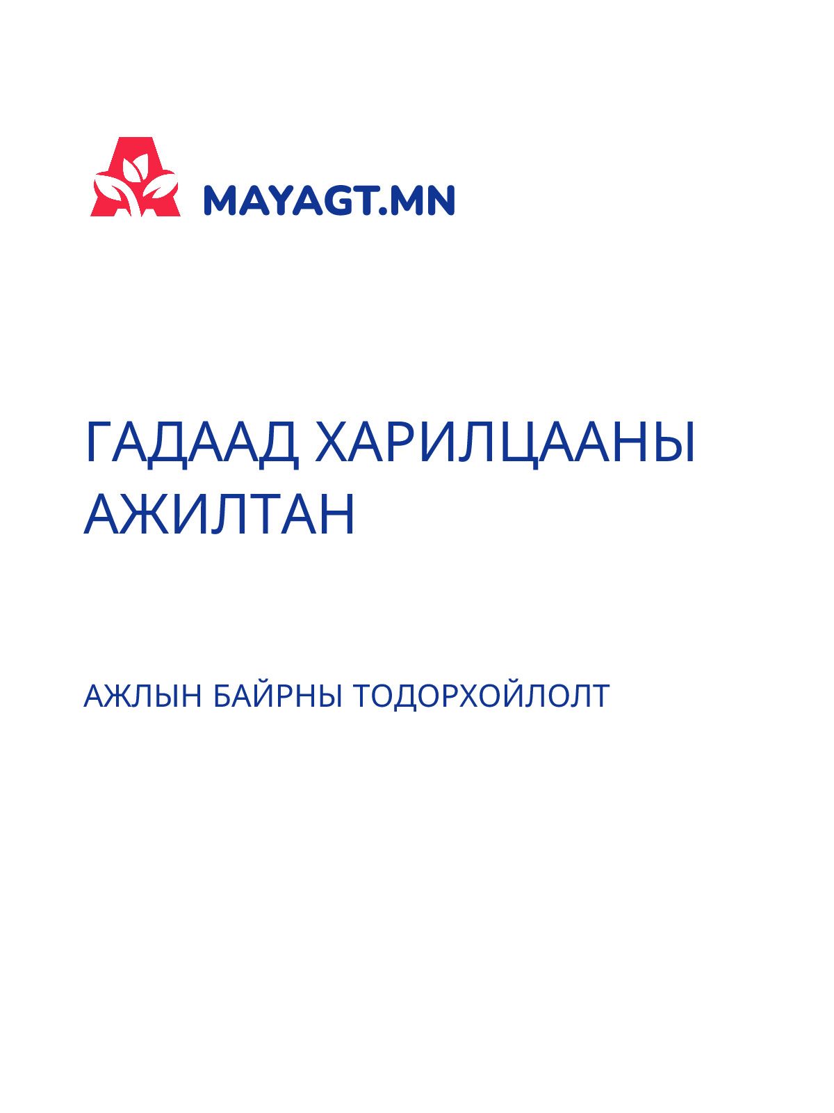 ГАДААД ХАРИЛЦААНЫ АЖИЛТАН