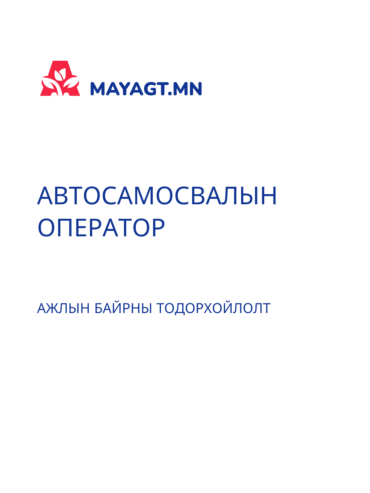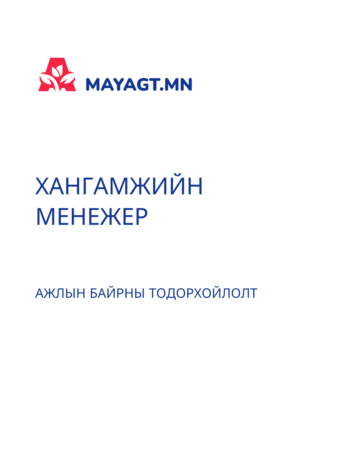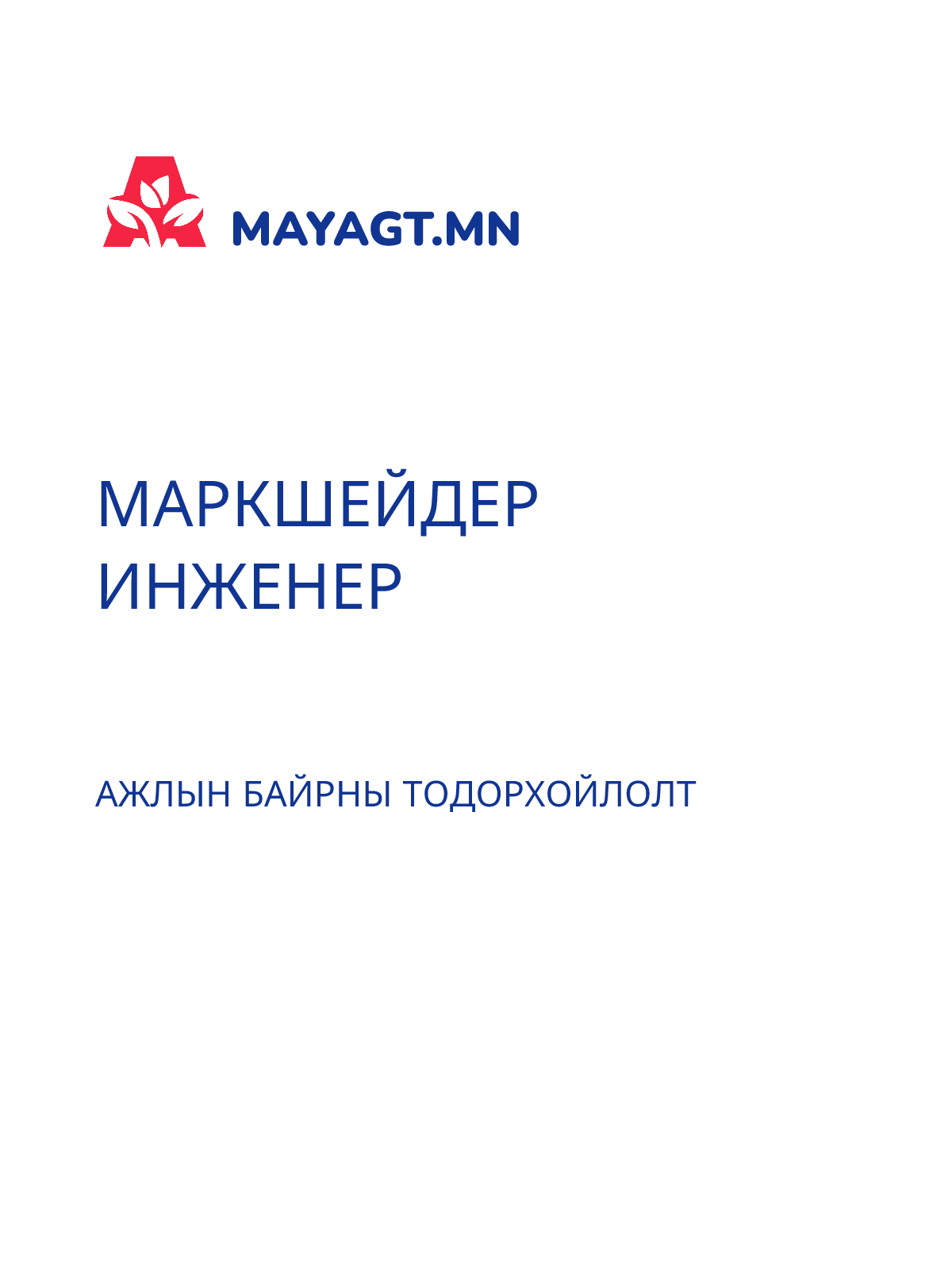 АЖИЛД ОРОХ ӨРГӨДЛИЙН МАЯГТ