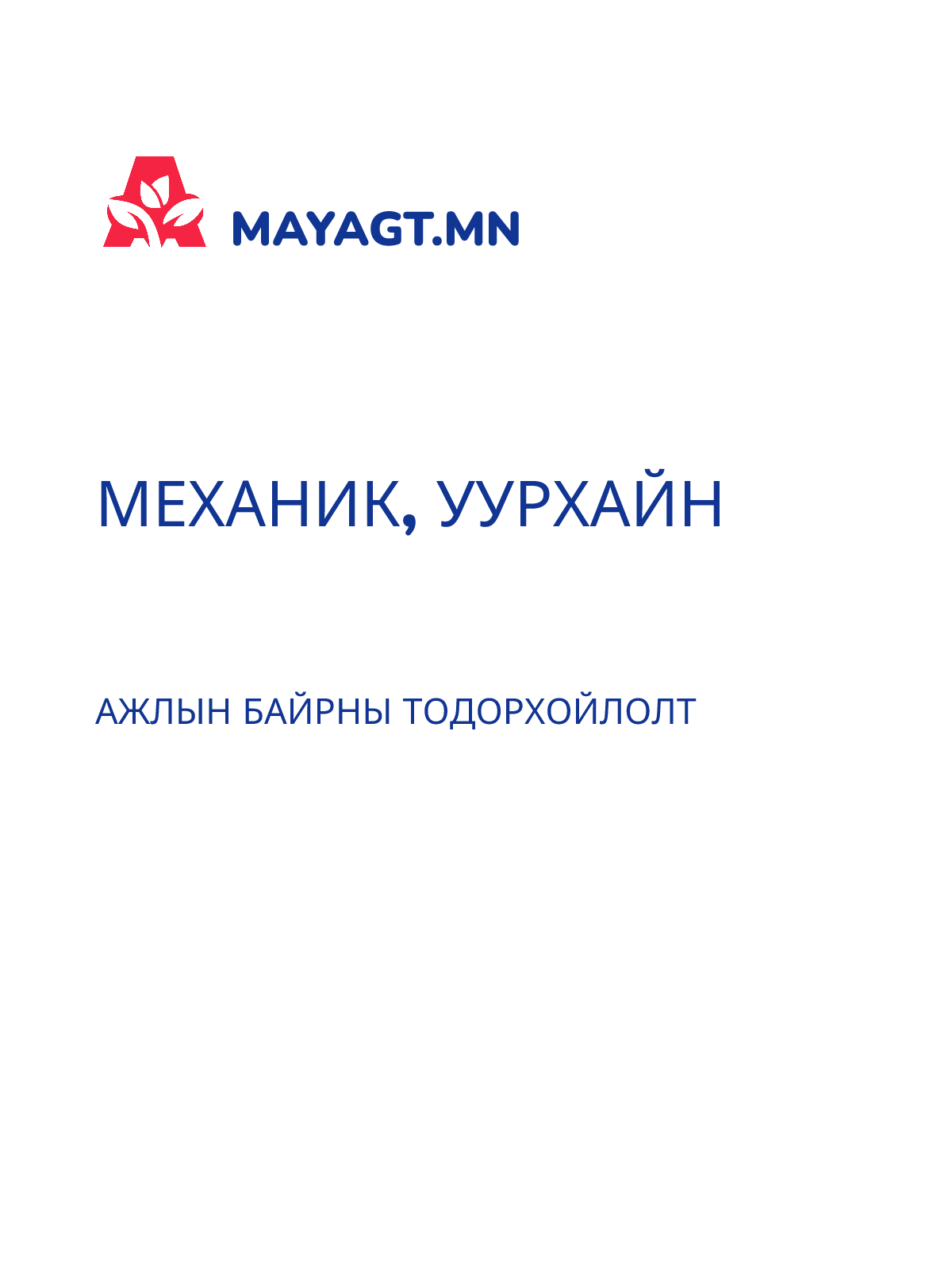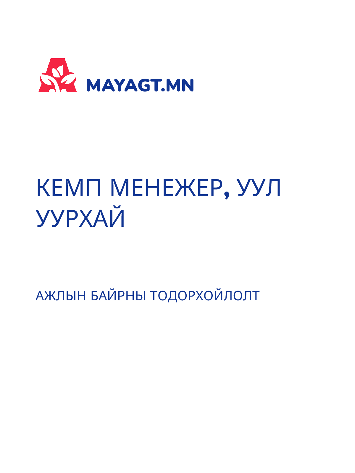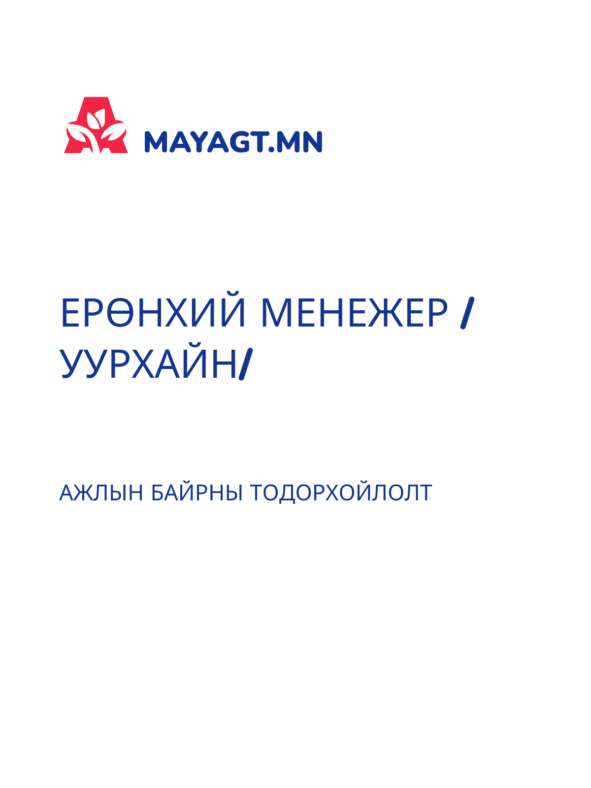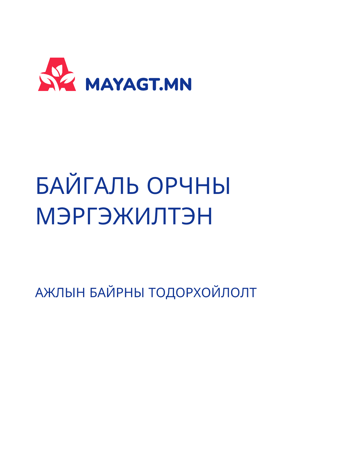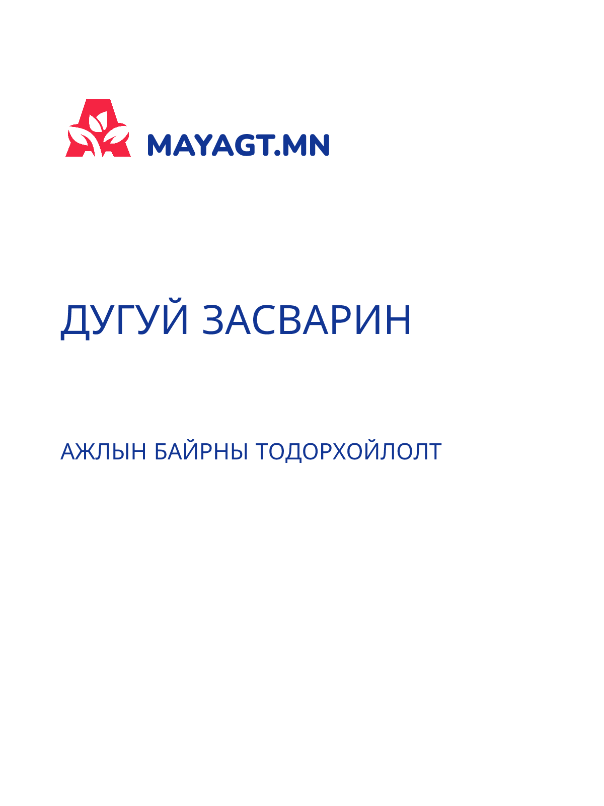 АЖЛЫН БАЙРНЫ ТОДОРХОЙЛОЛТ