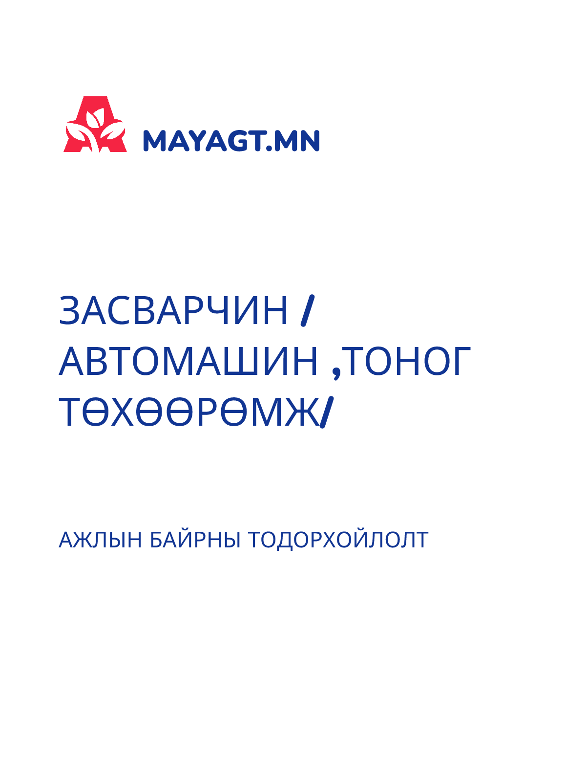 ЗАСВАРЧИН /АВТОМАШИН ,ТОНОГ ТӨХӨӨРӨМЖ/