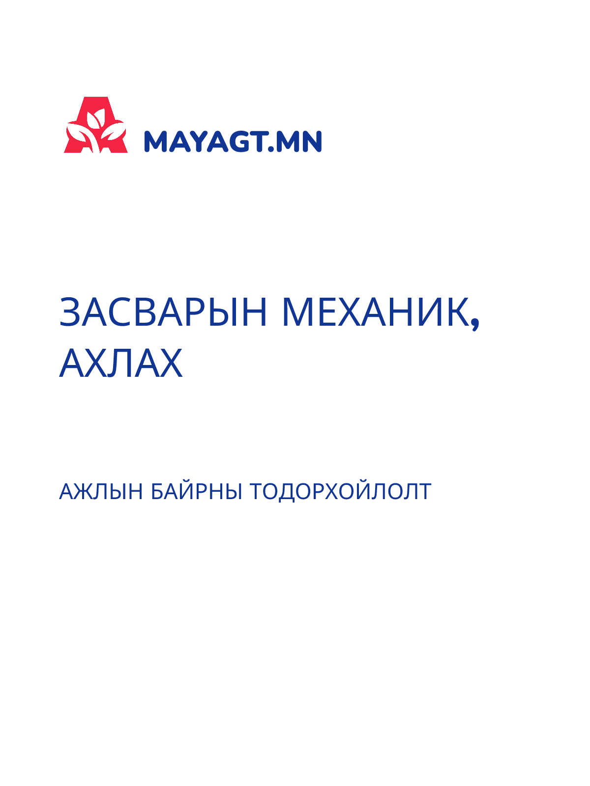 ЗАСВАРЫН МЕХАНИК, АХЛАХ