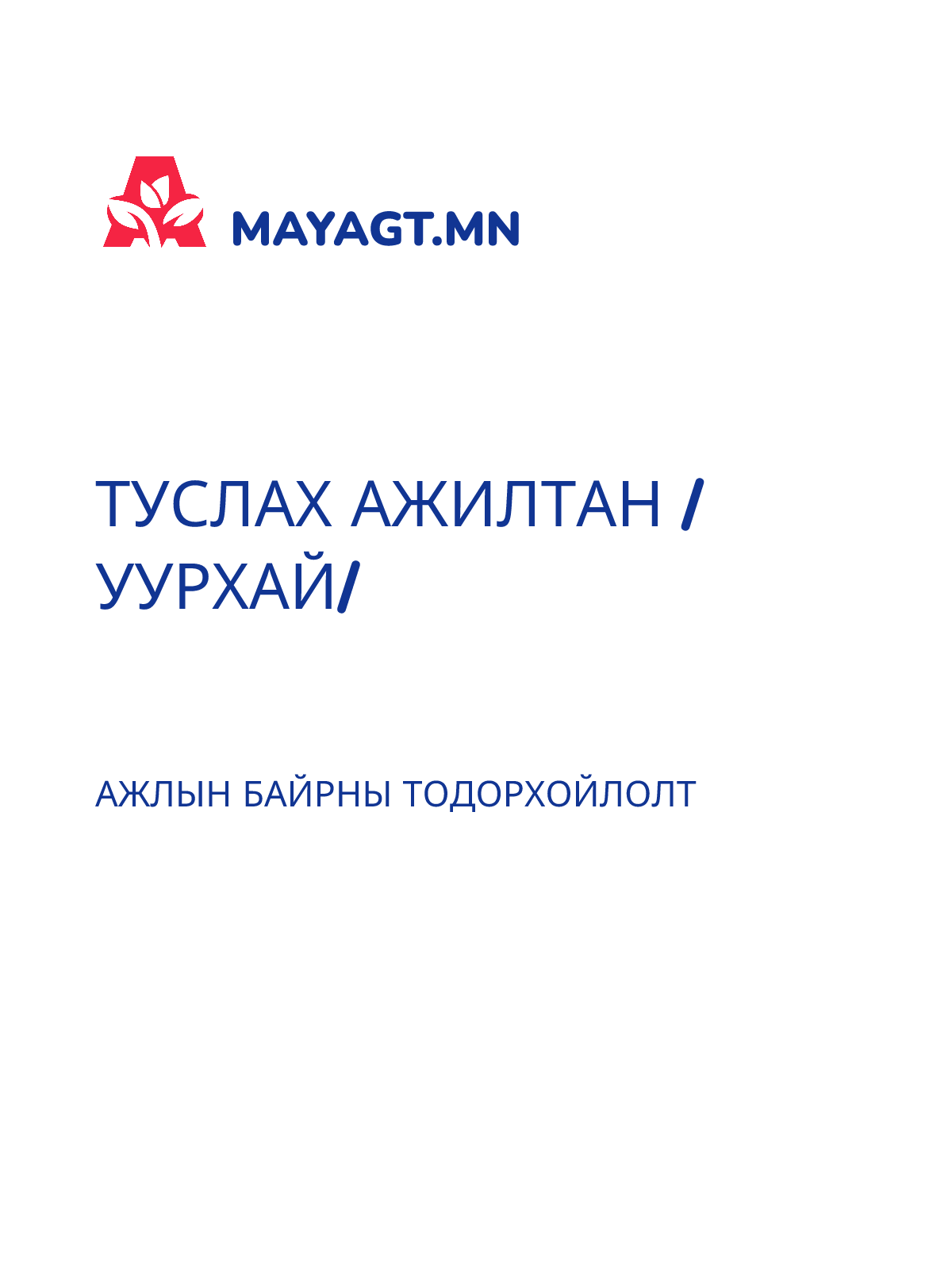 ТУСЛАХ АЖИЛТАН /АЖ АХУЙН/