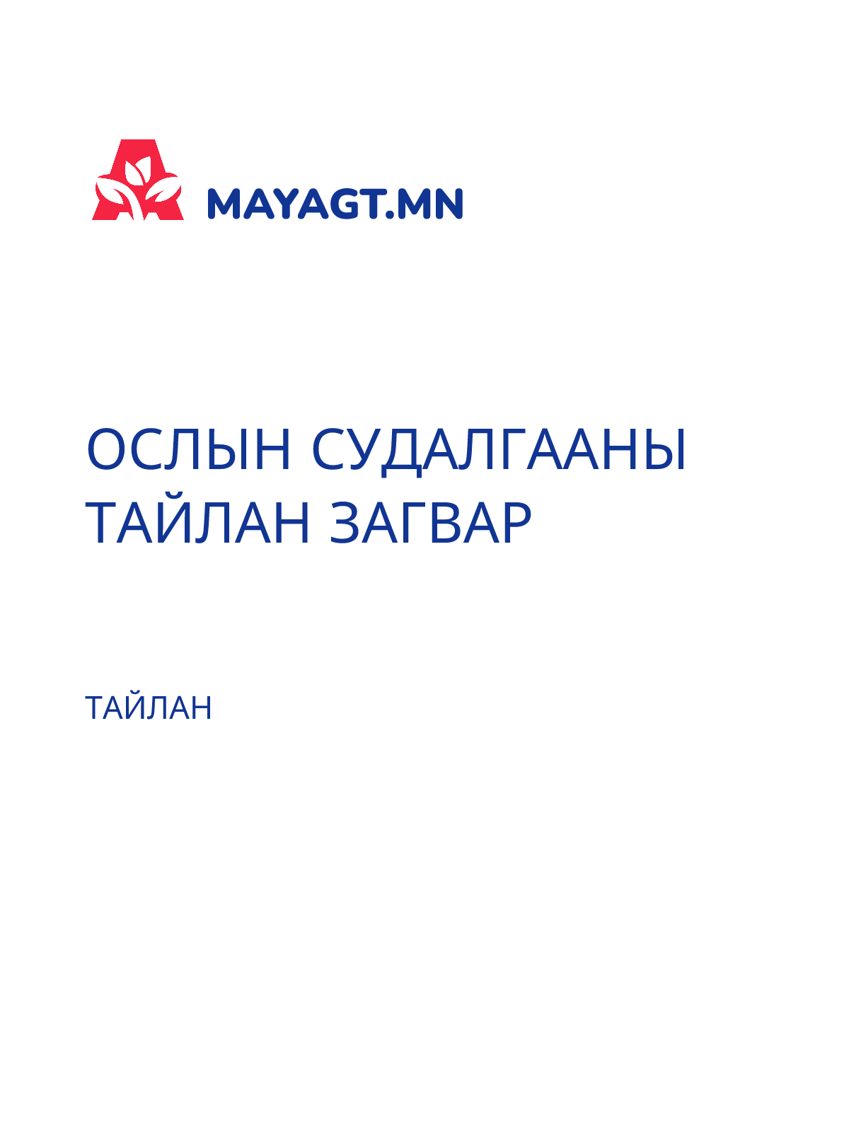 ОСЛЫН СУДАЛГААНЫ ТАЙЛАН ЗАГВАР