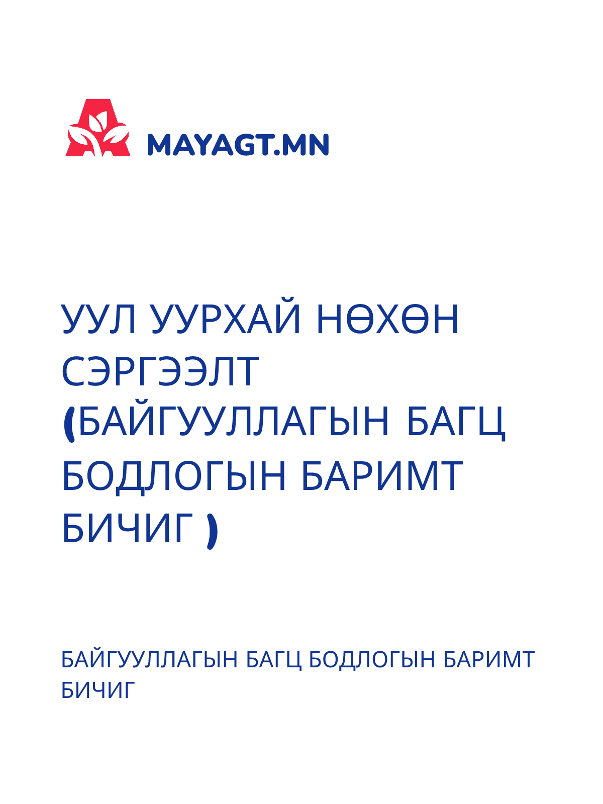 УУЛ УУРХАЙ НӨХӨН СЭРГЭЭЛТ (БАЙГУУЛЛАГЫН БАГЦ БОДЛОГЫН БАРИМТ БИЧИГ )