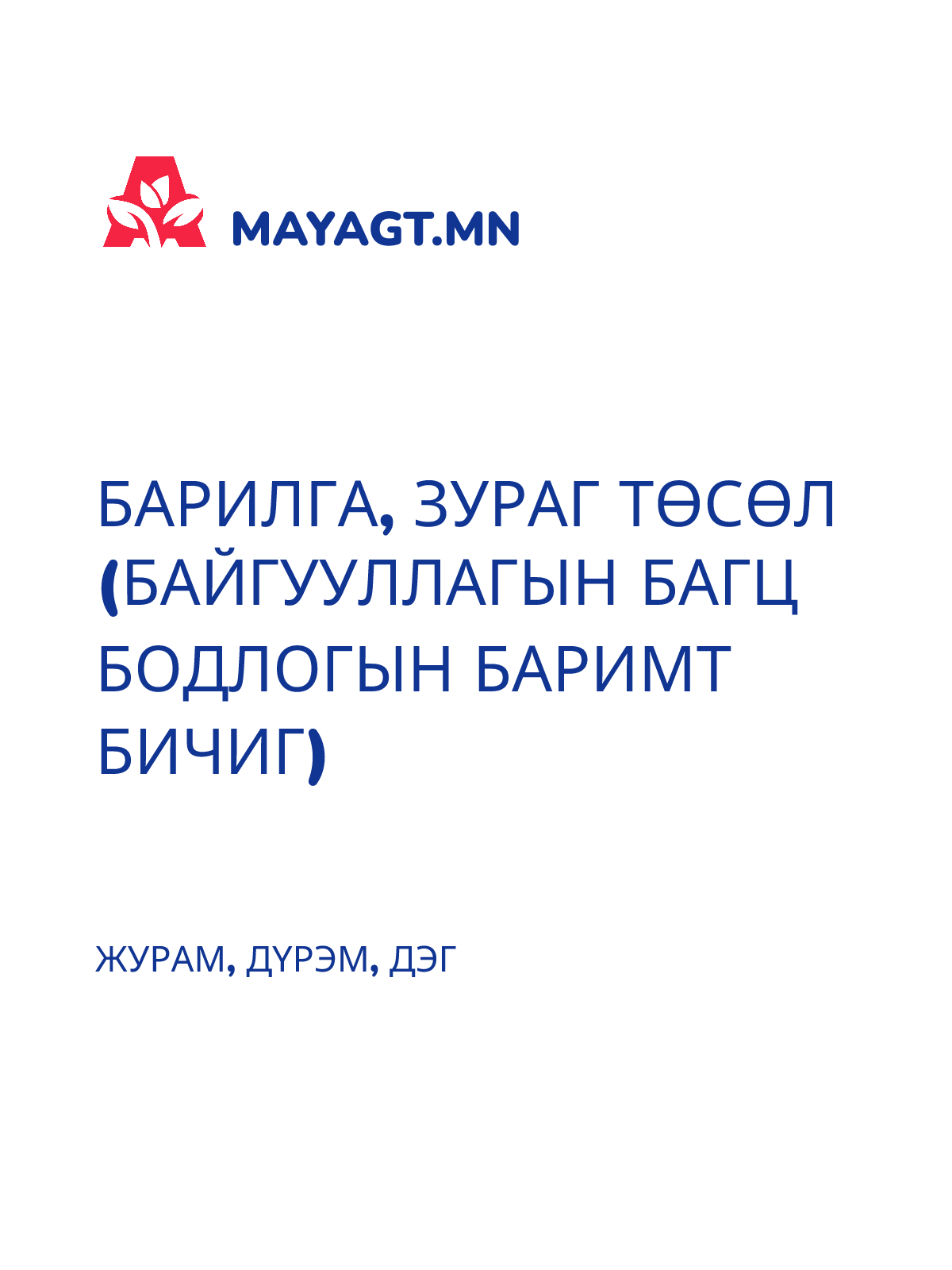 БАРИЛГА, ЗУРАГ ТӨСӨЛ (БАЙГУУЛЛАГЫН БАГЦ БОДЛОГЫН БАРИМТ БИЧИГ)